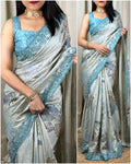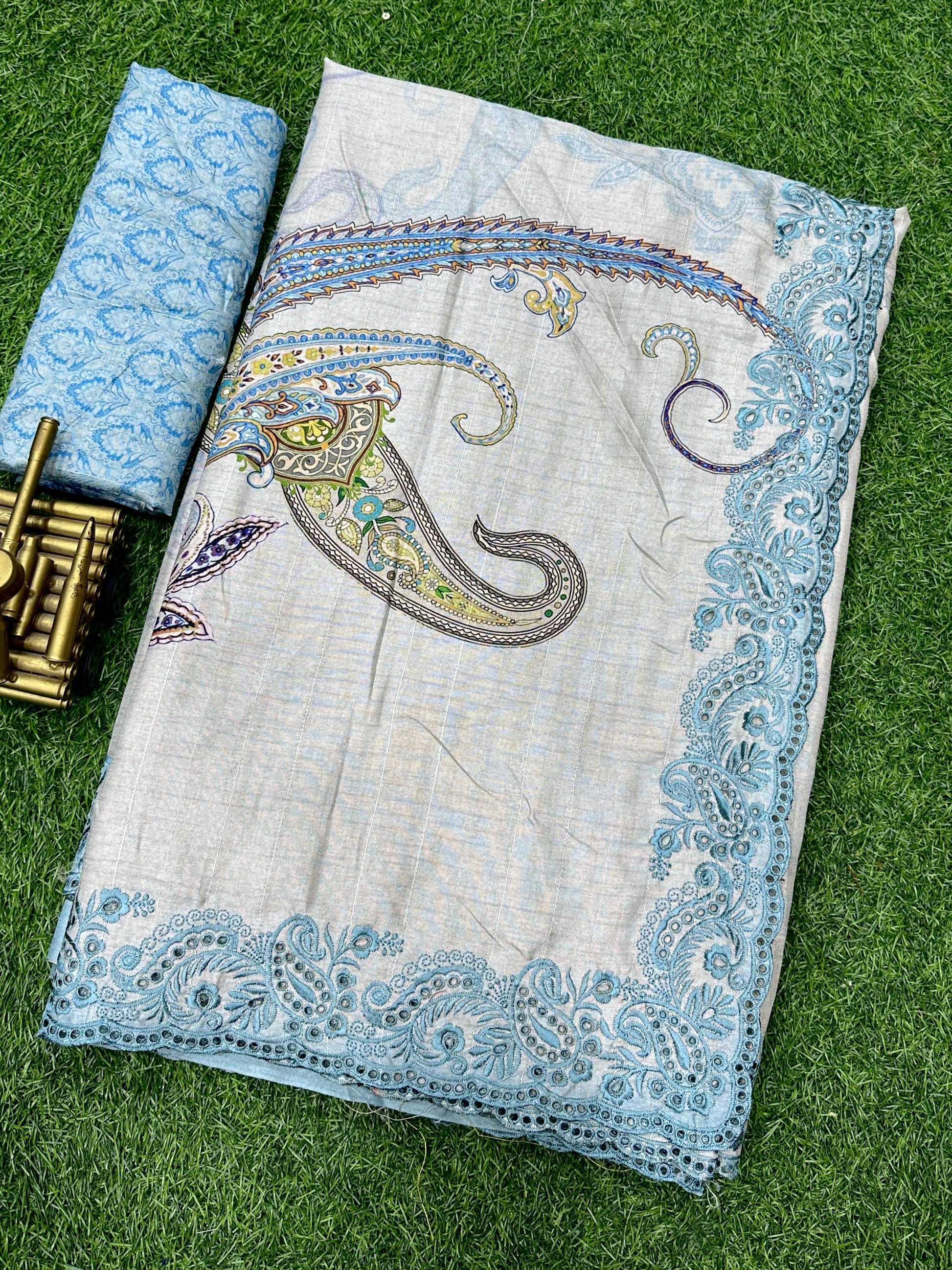 Saree- Digital print with thread Embroidered work with cut work & Boaring pattern.