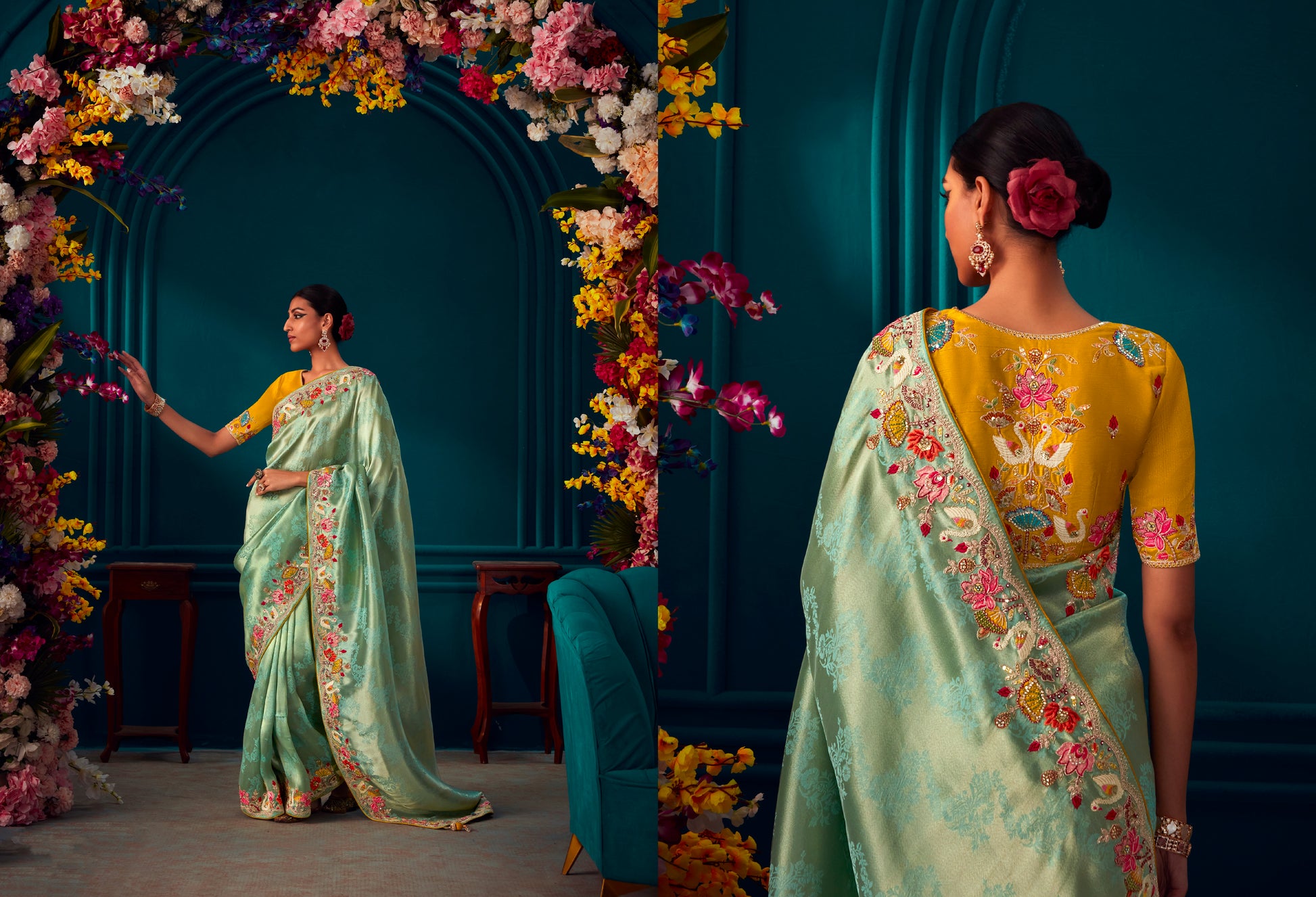 Looking Some One For This Same Colour Beautiful Saree For Wedding On Premium Fabric Fabric With All Over Saree Embroidery Work Butti Border And Heavy Embroidery Work Blouse.