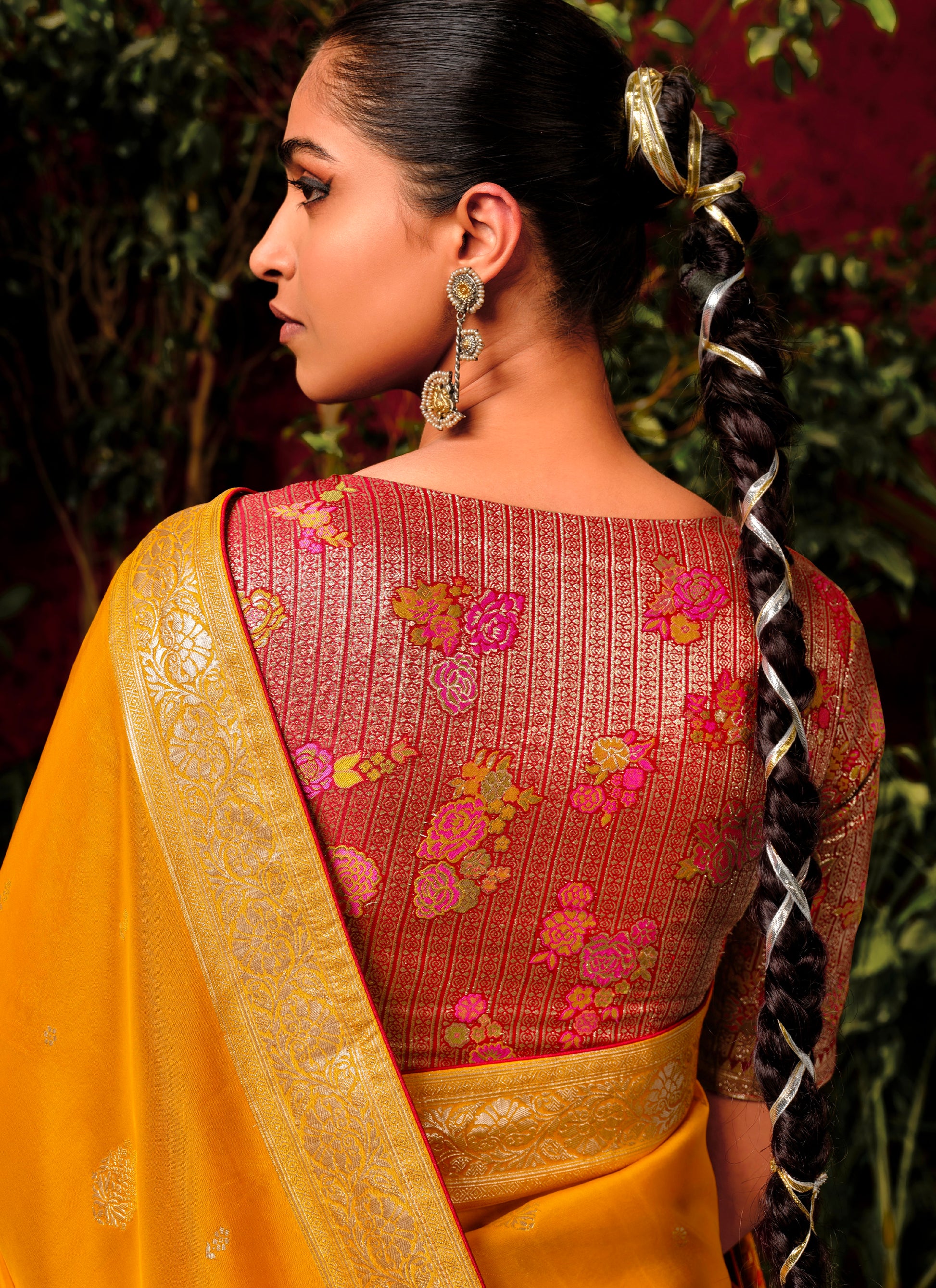 The Silk Weave Work on the Smoothing Silk Fabric Catches Everyone's Attention and It's blouse Complements the Overall Vibes of Your Attire.