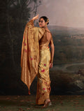 Beautiful Designer Wedding Wear Pure Zari Linen With Floral Print Saree