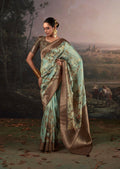 Beautiful Designer Wedding Wear Pure Zari Linen With Floral Print Saree