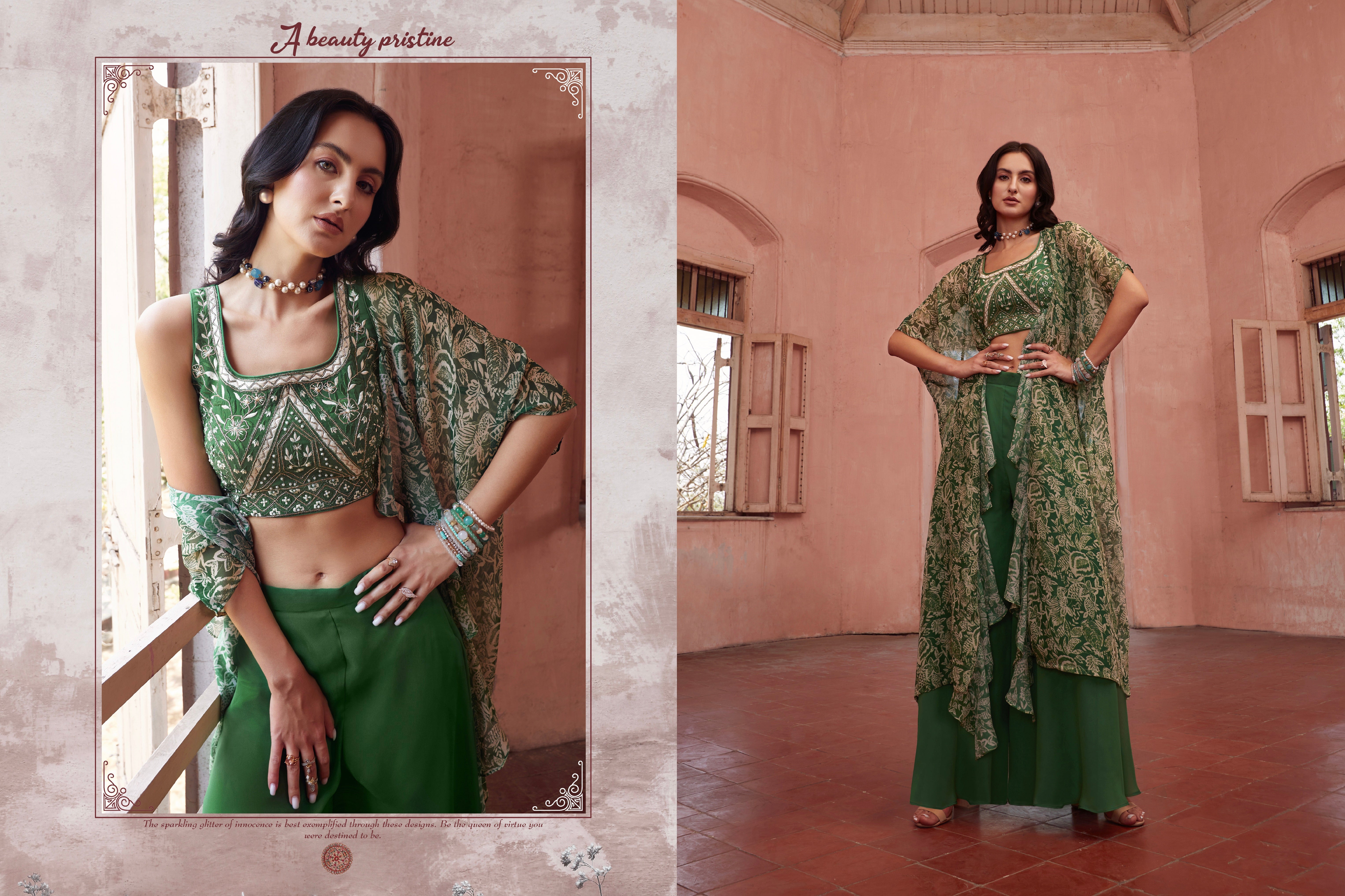 Mint Green Printed Crepe Silk Palazzo Suit with Hand Aari & Gota Work loading