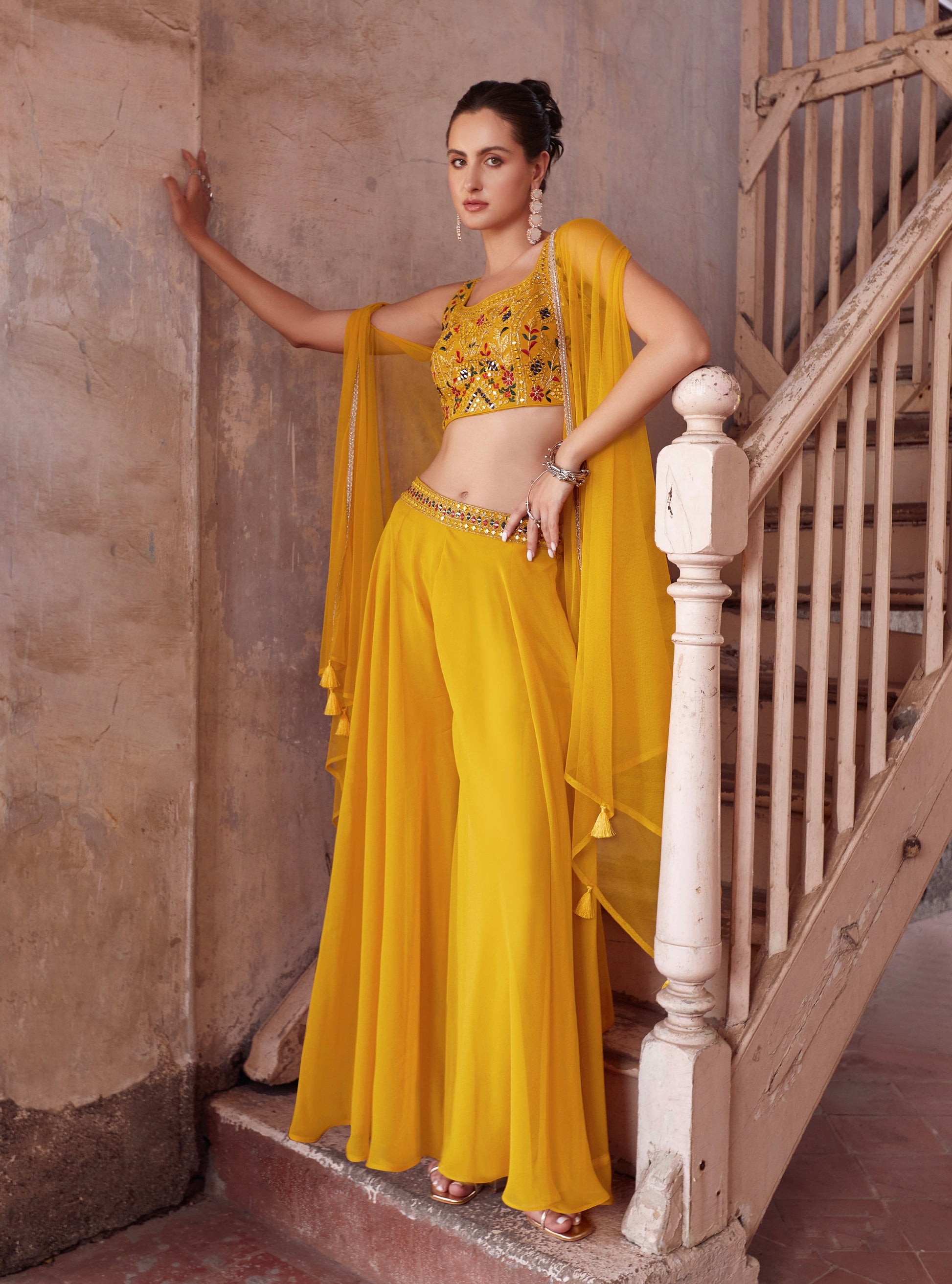 Fabric - Sharara & Choli - Georgette - Cape - Net