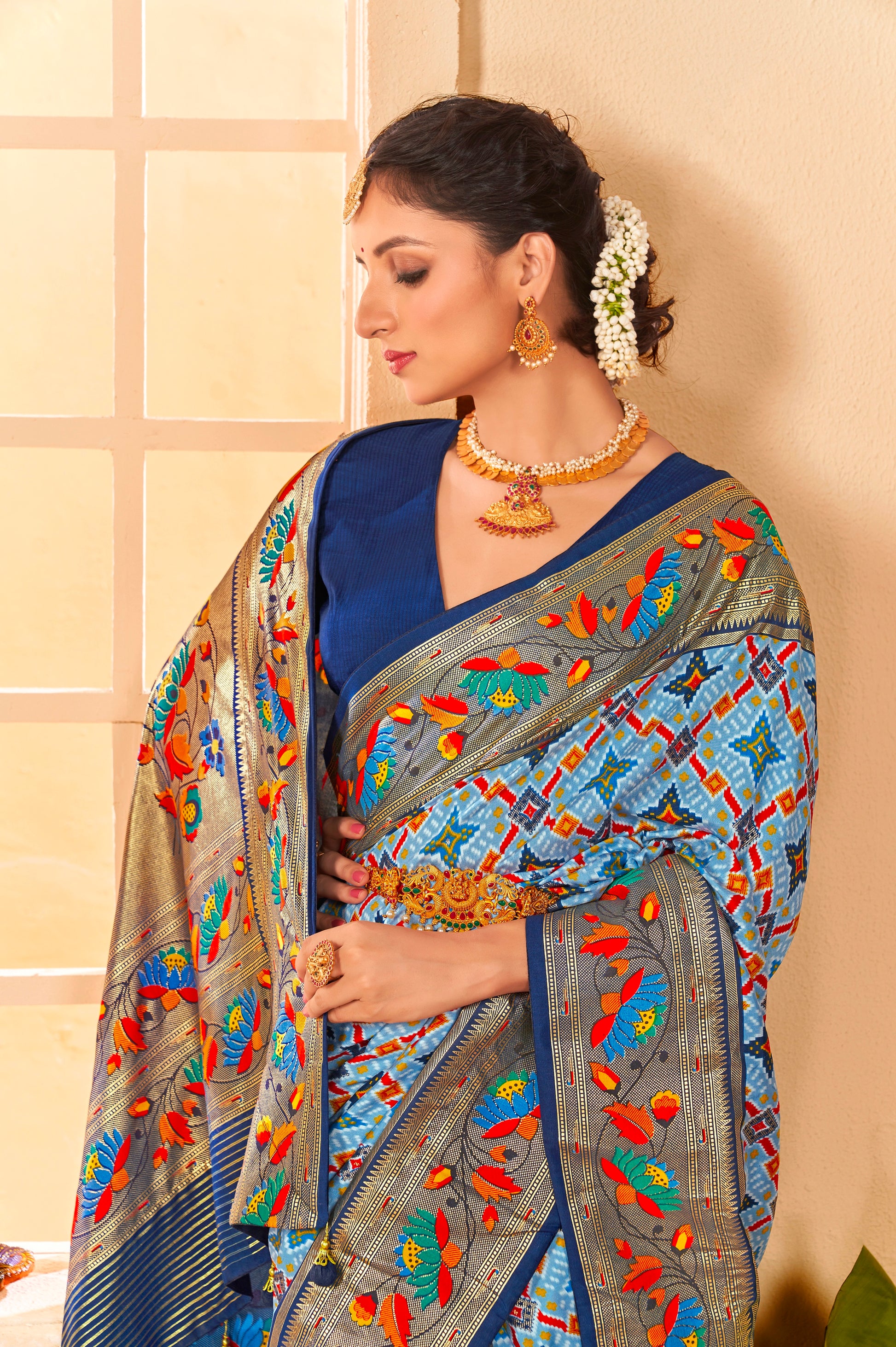 Beautiful Fancy Velvet Silk With Paithani Design Saree