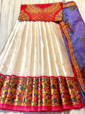 Beautiful Kanjiveram Silk Pure Zari HALF Saree with Blouse Along With Dupptta