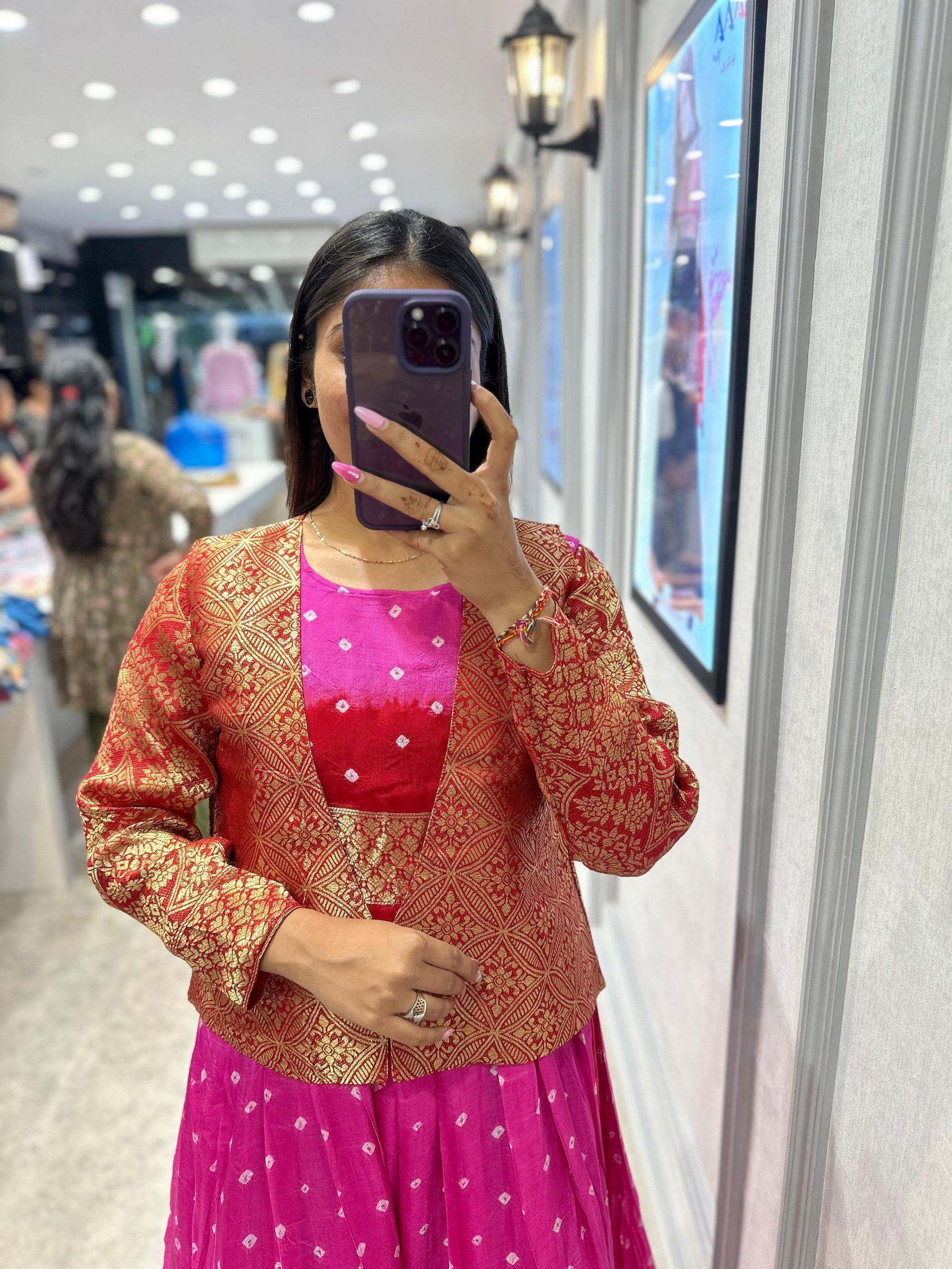 Kanjiveram Silk Zari Gown With Koti With Beautiful Bandhej