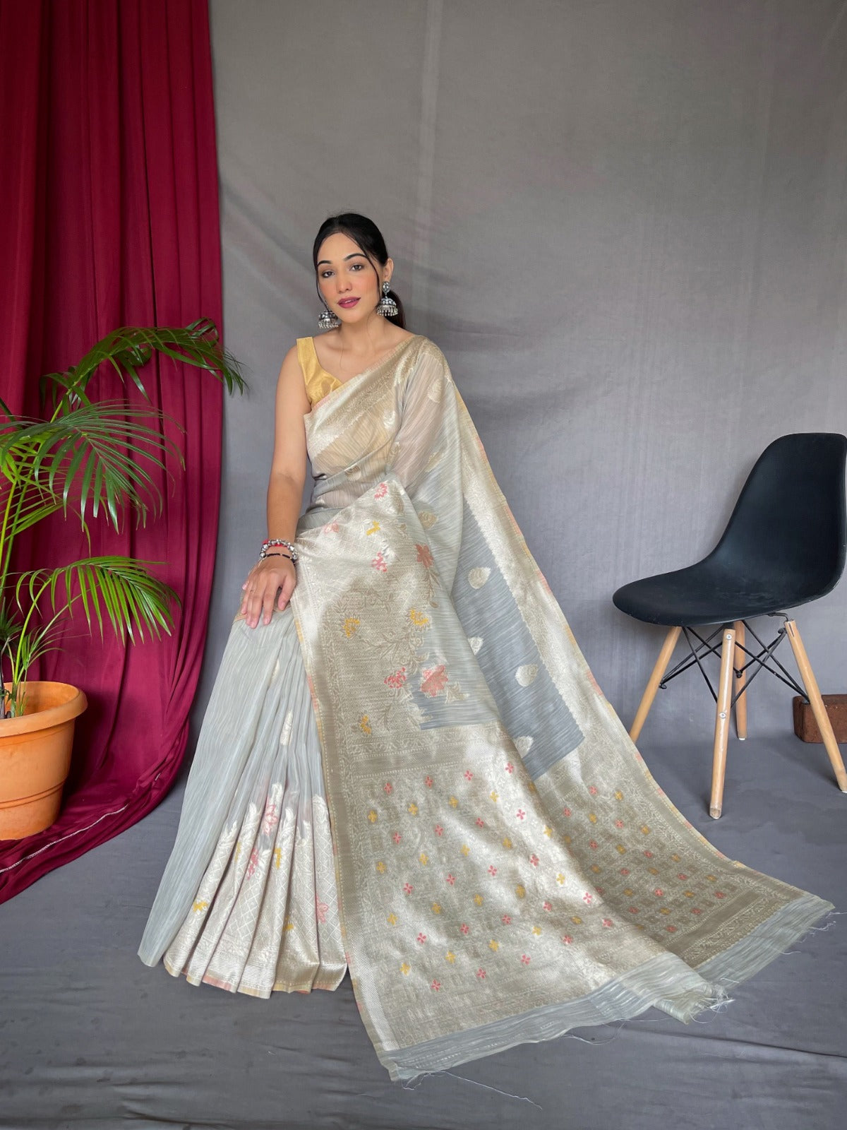 Beautiful Ladli Designer Pure Linen Slub Silk Saree