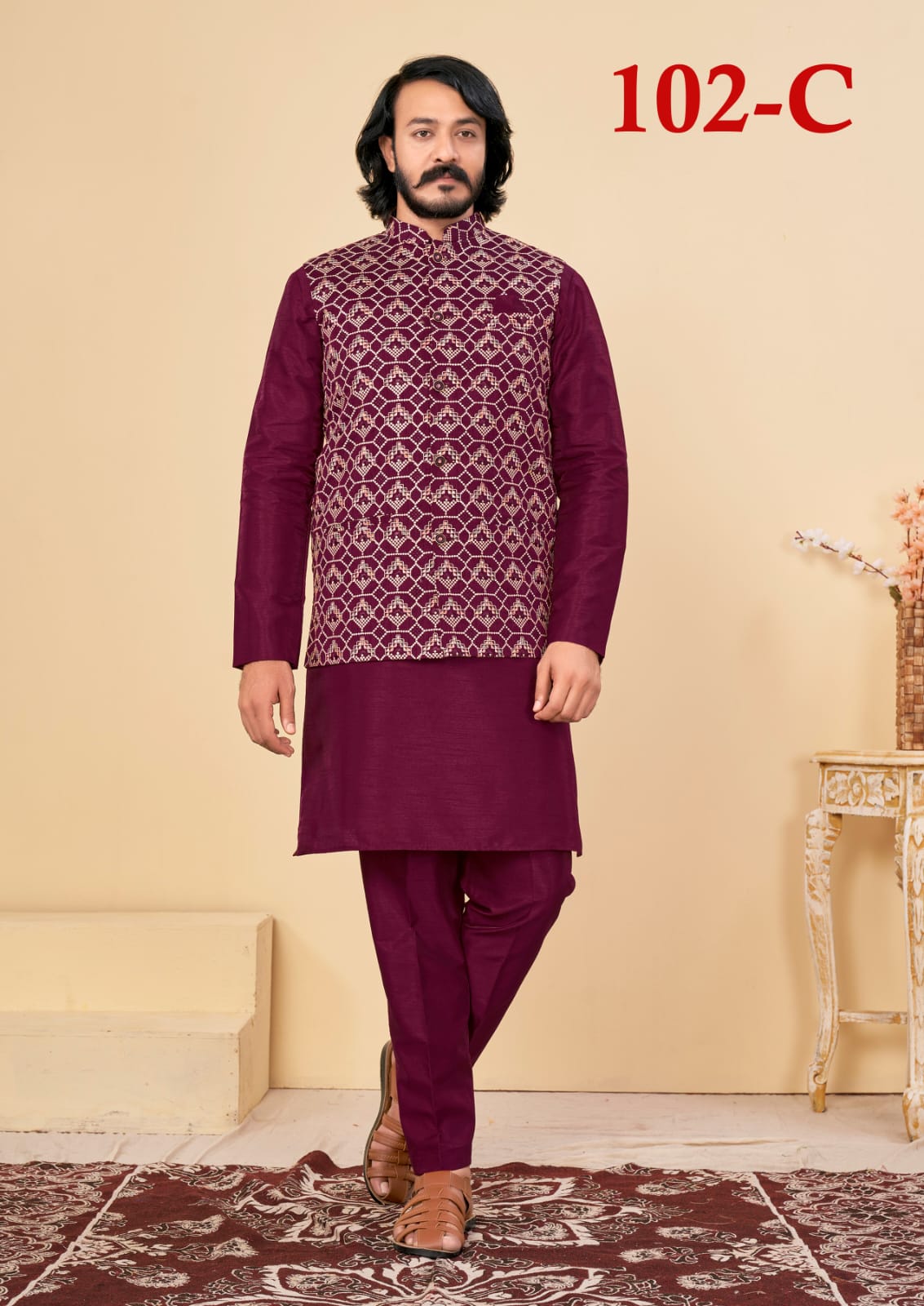 Beautiful Men's Designer Silk Kurta Payjama With Koti Jacket