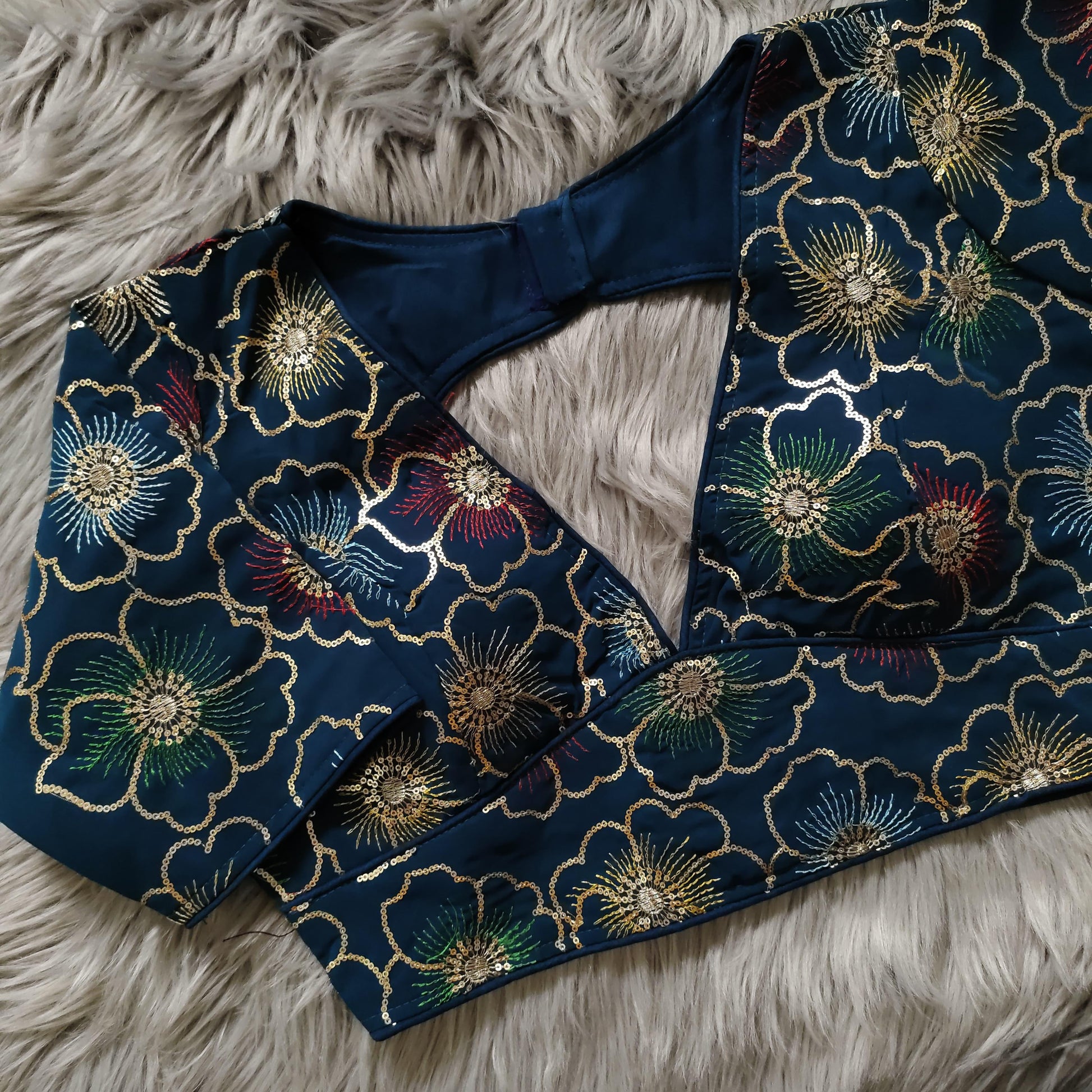 Beautiful golden sequence all over cover with colour full embroidery work in blouse