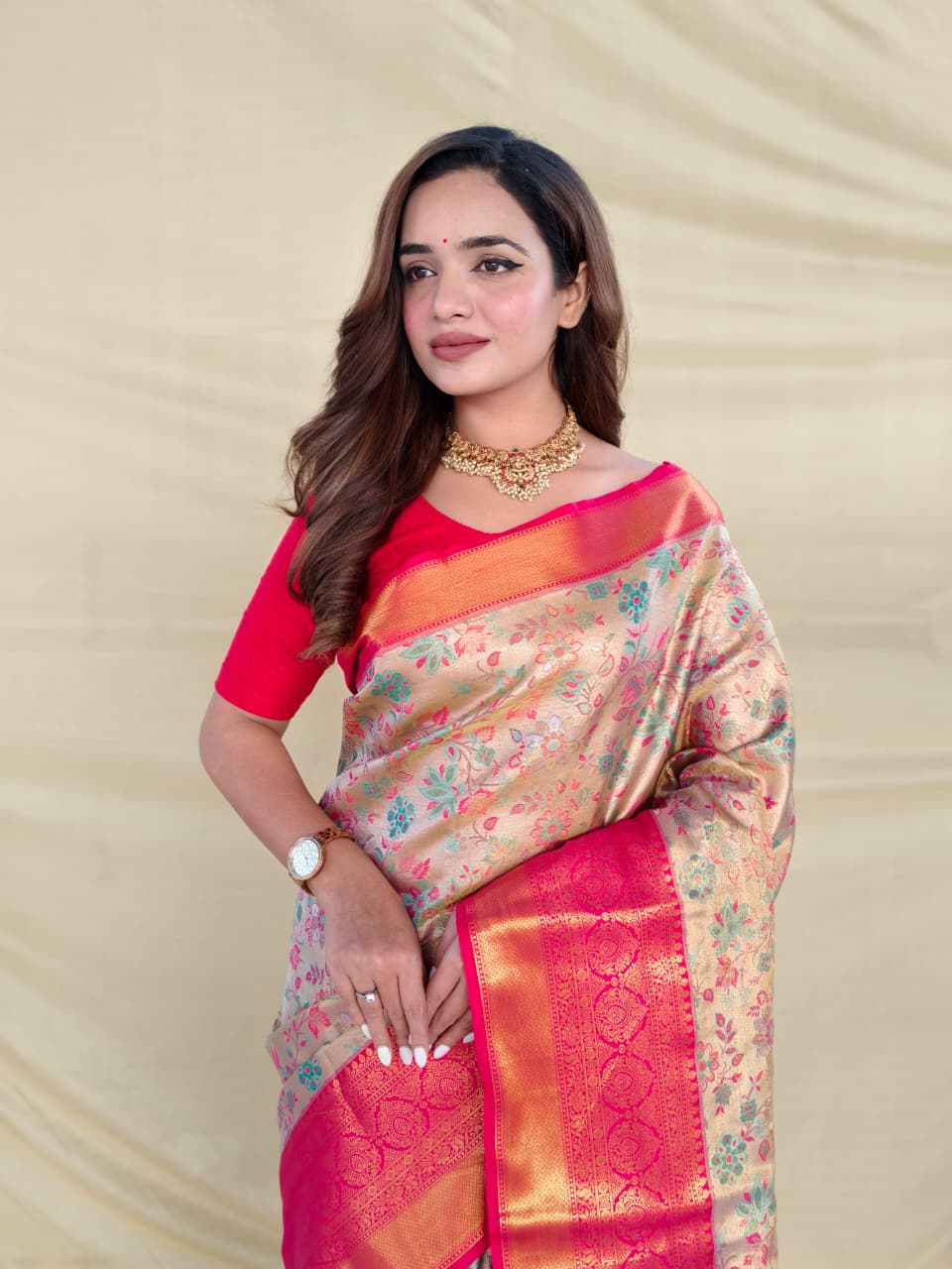 Beige Pure Kanchipuram Silk Sarees
