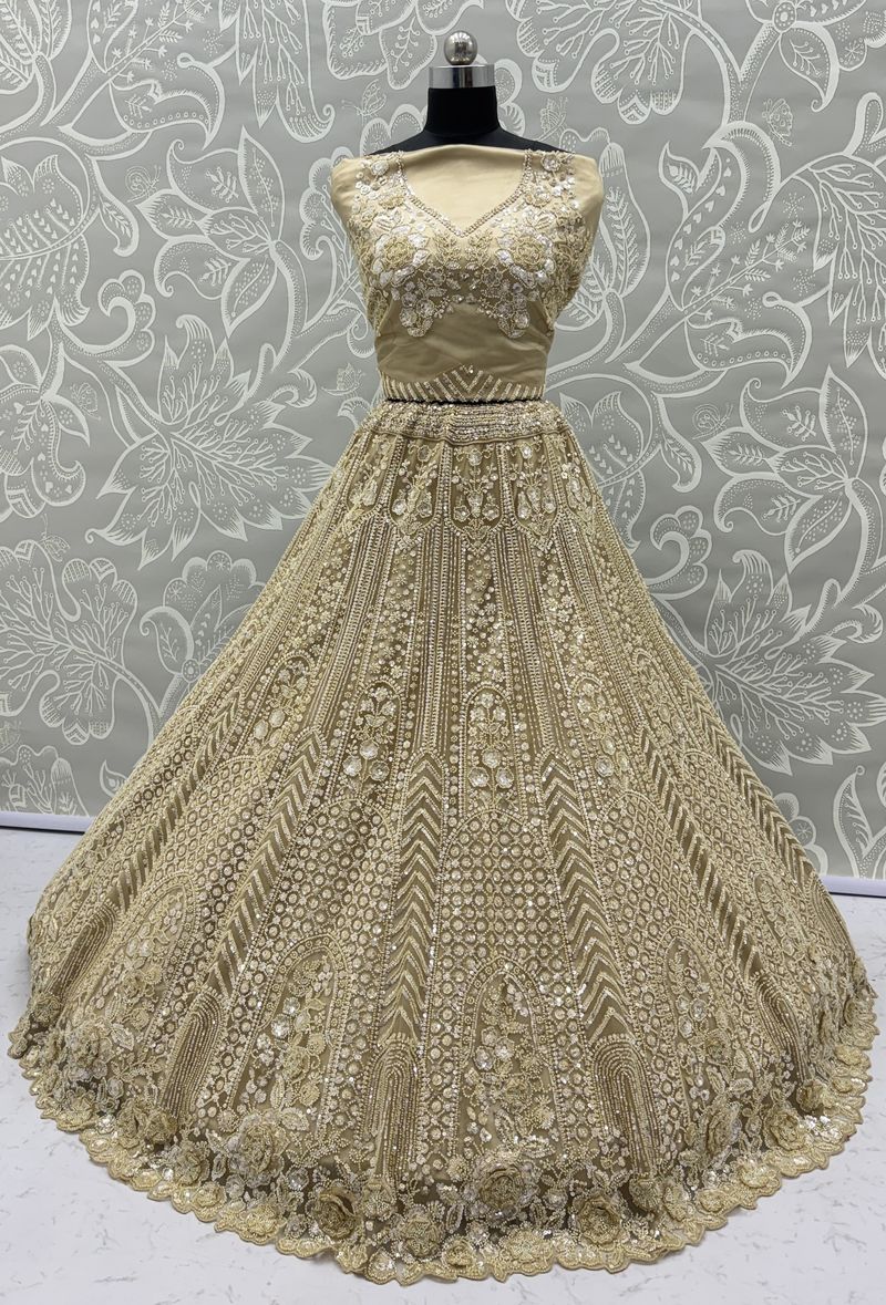 Beige Pure Soft Net Heavy Embroidery Work Bridal Lehenga