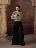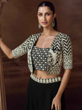 Black Chinon Silk Palazzo Suit with Embroidered Jacket