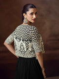 Experience timeless sophistication in this Black Chinon Silk Palazzo Suit, where premium craftsmanship meets contemporary design. The ensemble showcases a mirror-embellished blouse paired with gracefully draped palazzo pants that offer unrestricted movement and comfort. The showstopper is the ornately embroidered short jacket, featuring intricate front and back detailing that commands attention. Crafted from genuine premium chinon silk, this three-piece set delivers the luxurious drape and breathability essential for extended wear at weddings, sangeet ceremonies, receptions, and festive celebrations. An investment piece that seamlessly transitions from traditional to modern styling.