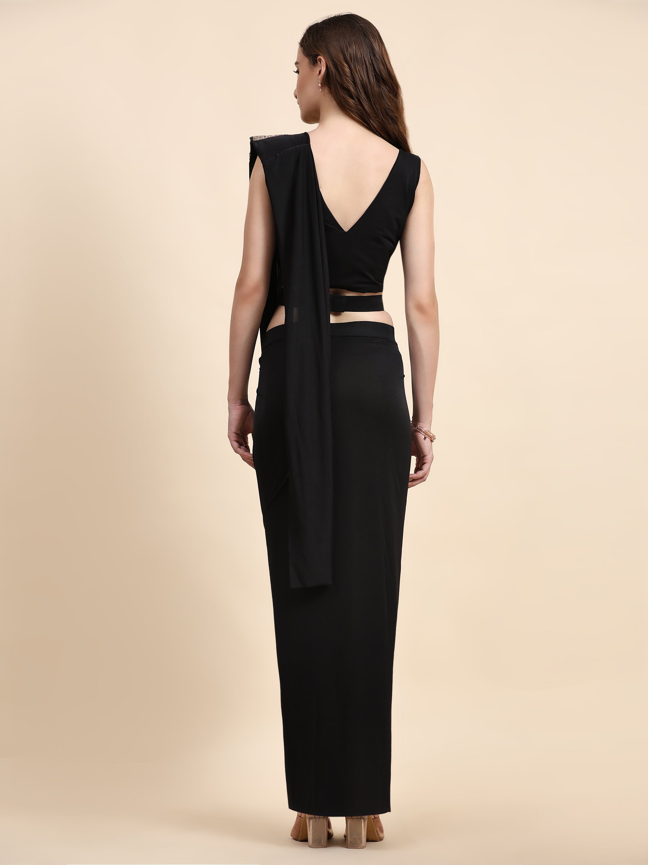 Black Pure Imported Crystle Ready-to-Wear Saree