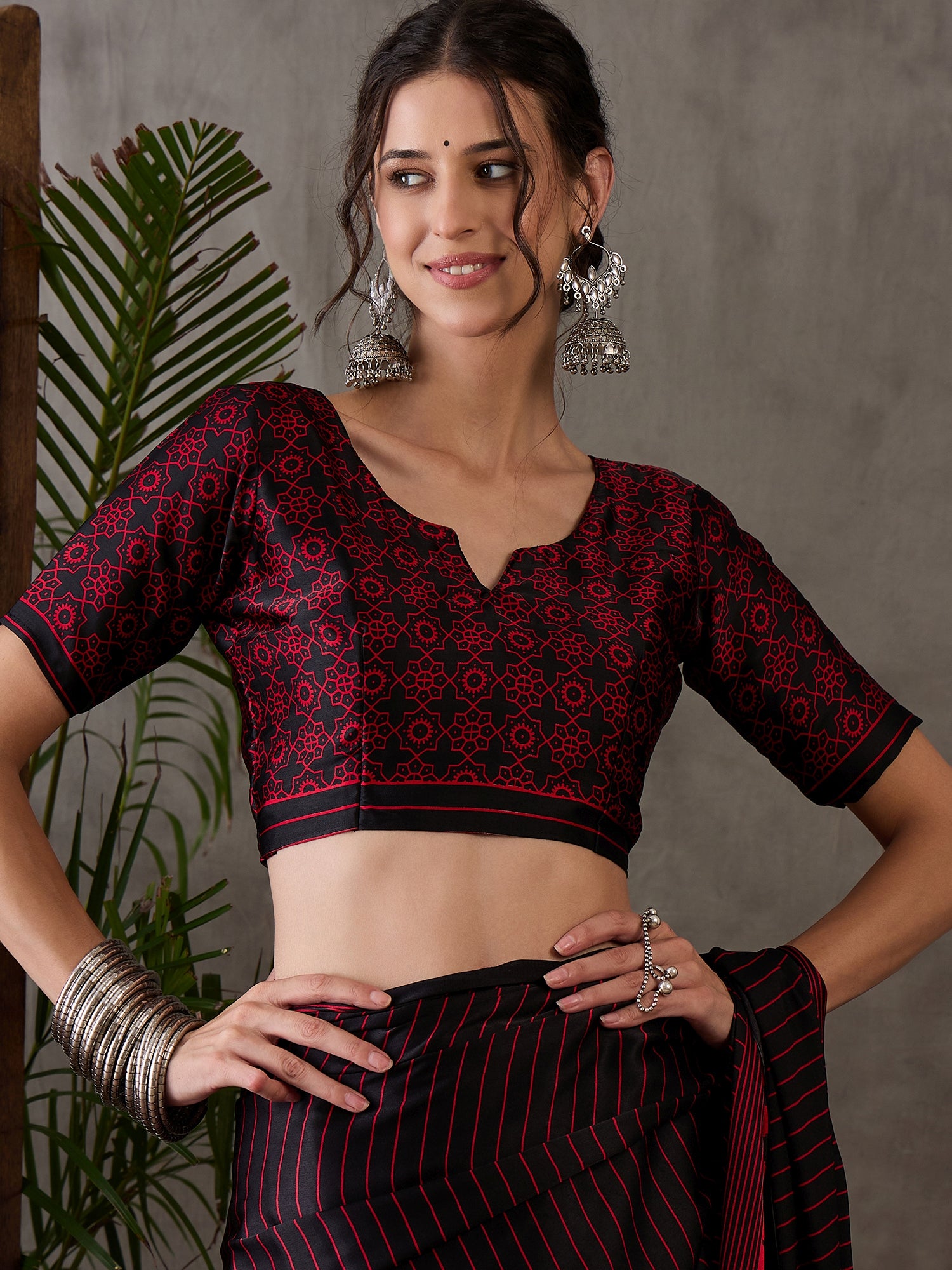 Black Pure Semi Modal Silk Ajarkh Printed Saree