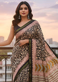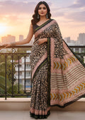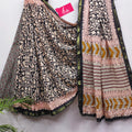 Black Pure Soft Mal Mal Cotton Bagru Block Print Saree