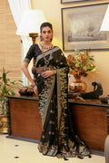 Black Satin Silk Saree with Intricate Zari Weaving and Satin Silk Blouse