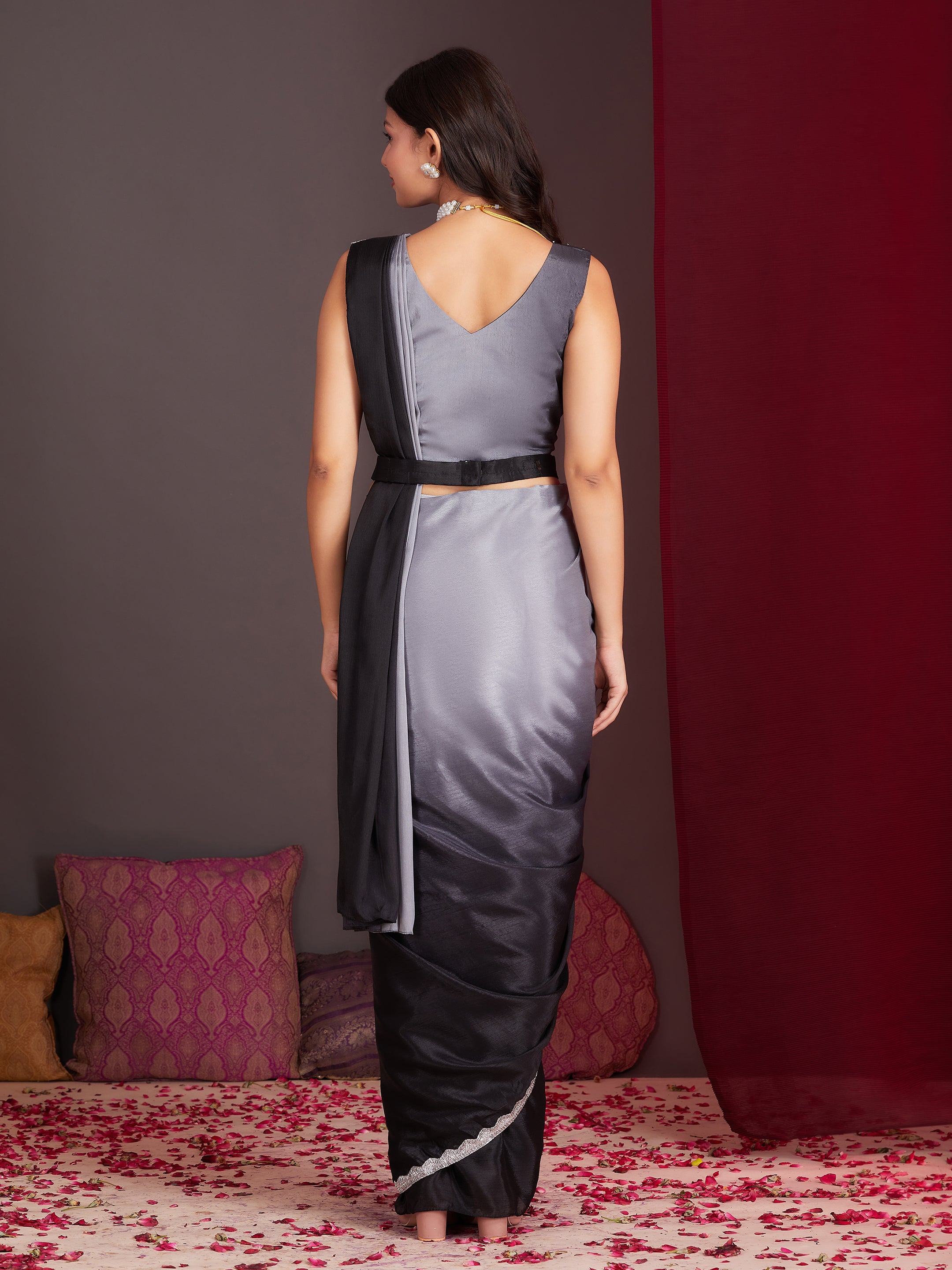 Black shaded Pure Imported Chinnon Sequins Ready-to-Wear Saree