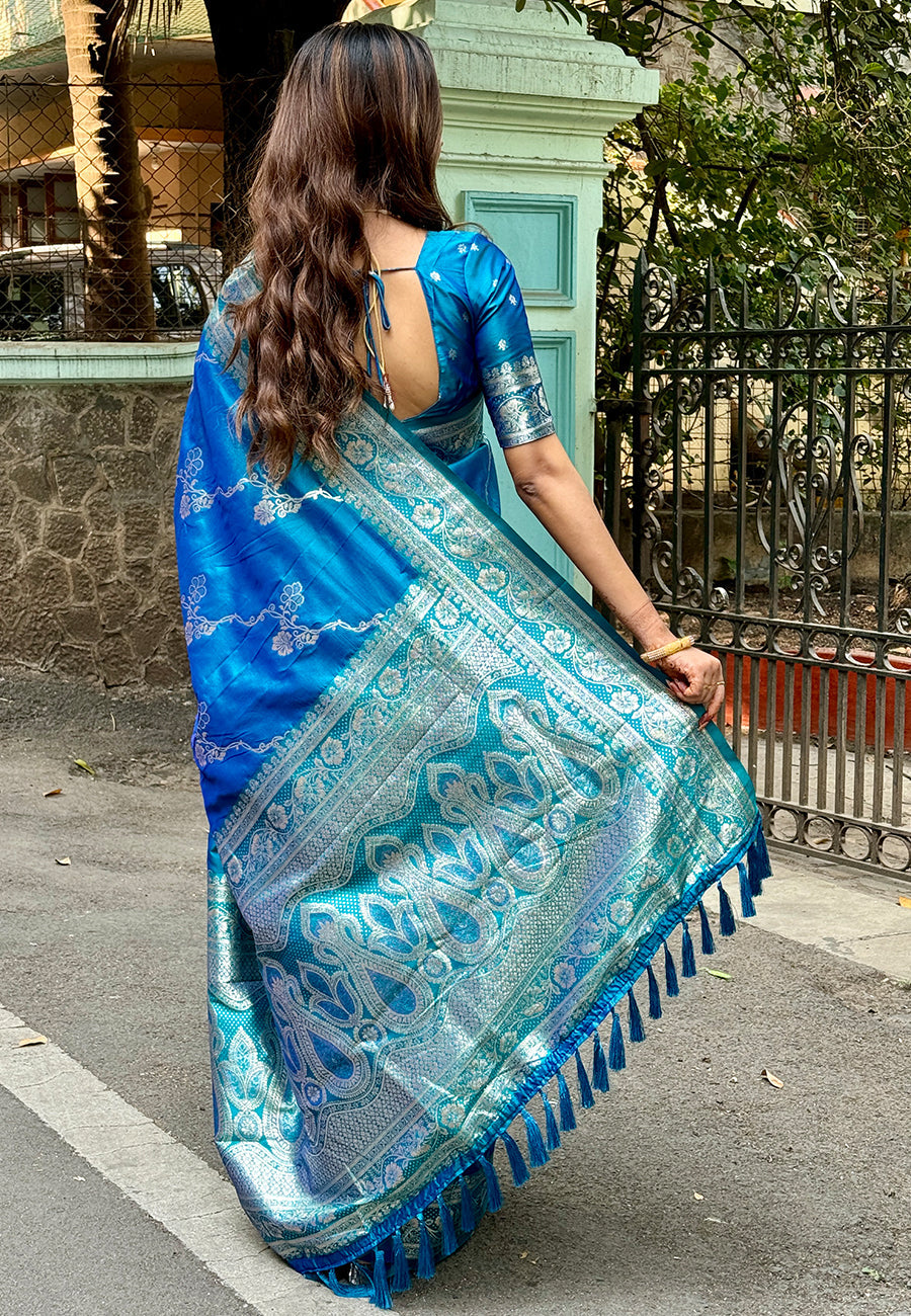 Blue Banarasi Jaal Soft Silk Zari Woven Saree