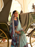 Blue & Grey Patola Silk Saree with Silver Border and Elephant Pallu