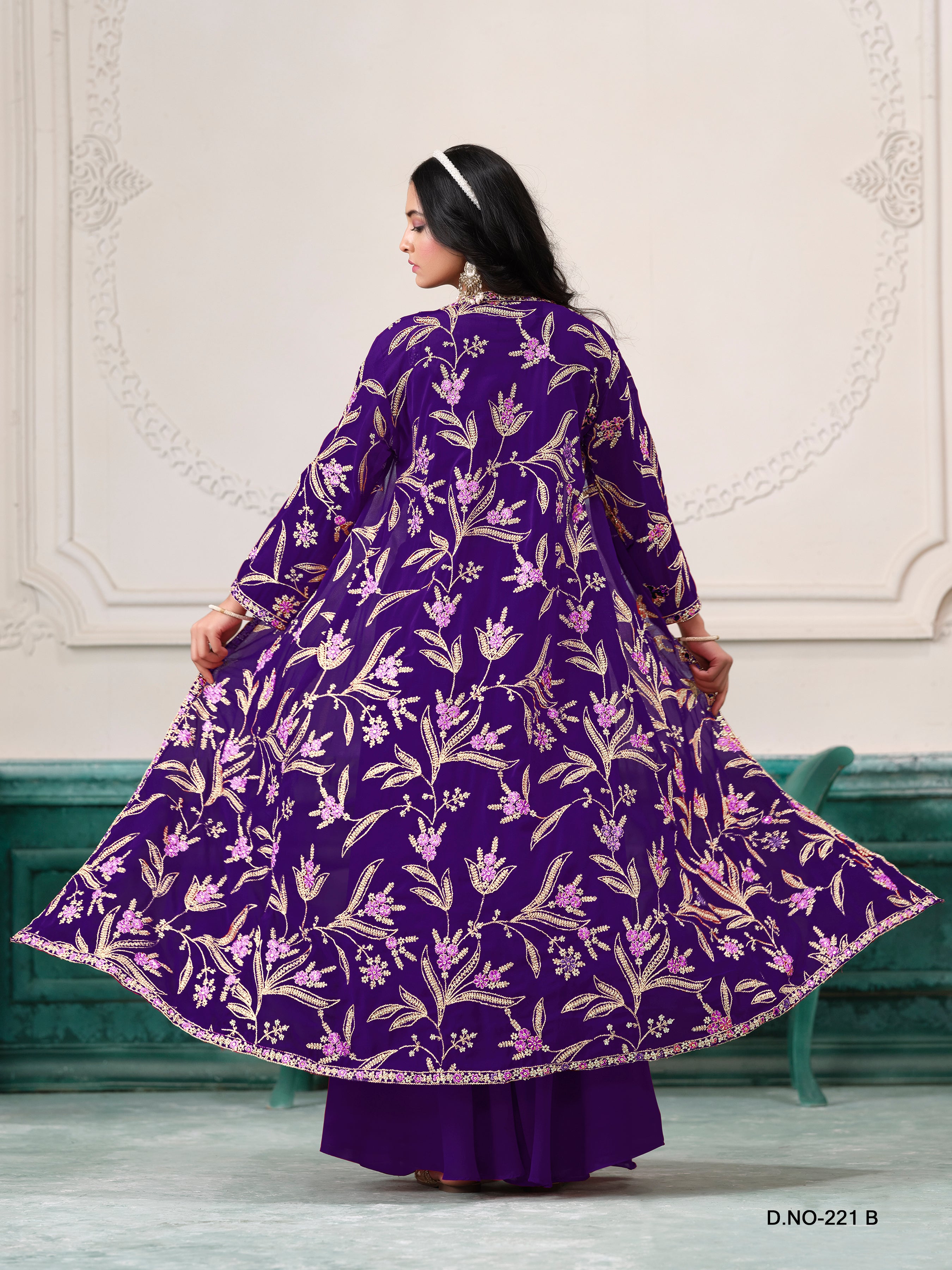 Blue Pure Faux Georgette Embroidered Palazzo Suit