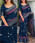 Blue Pure Mal Cotton Ajrakh Print Saree