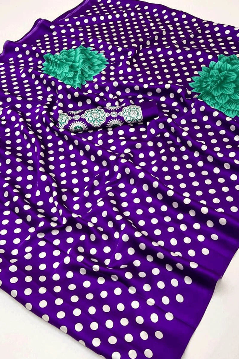 Blue Pure Modal Satin Ajrakh Print Satin Saree