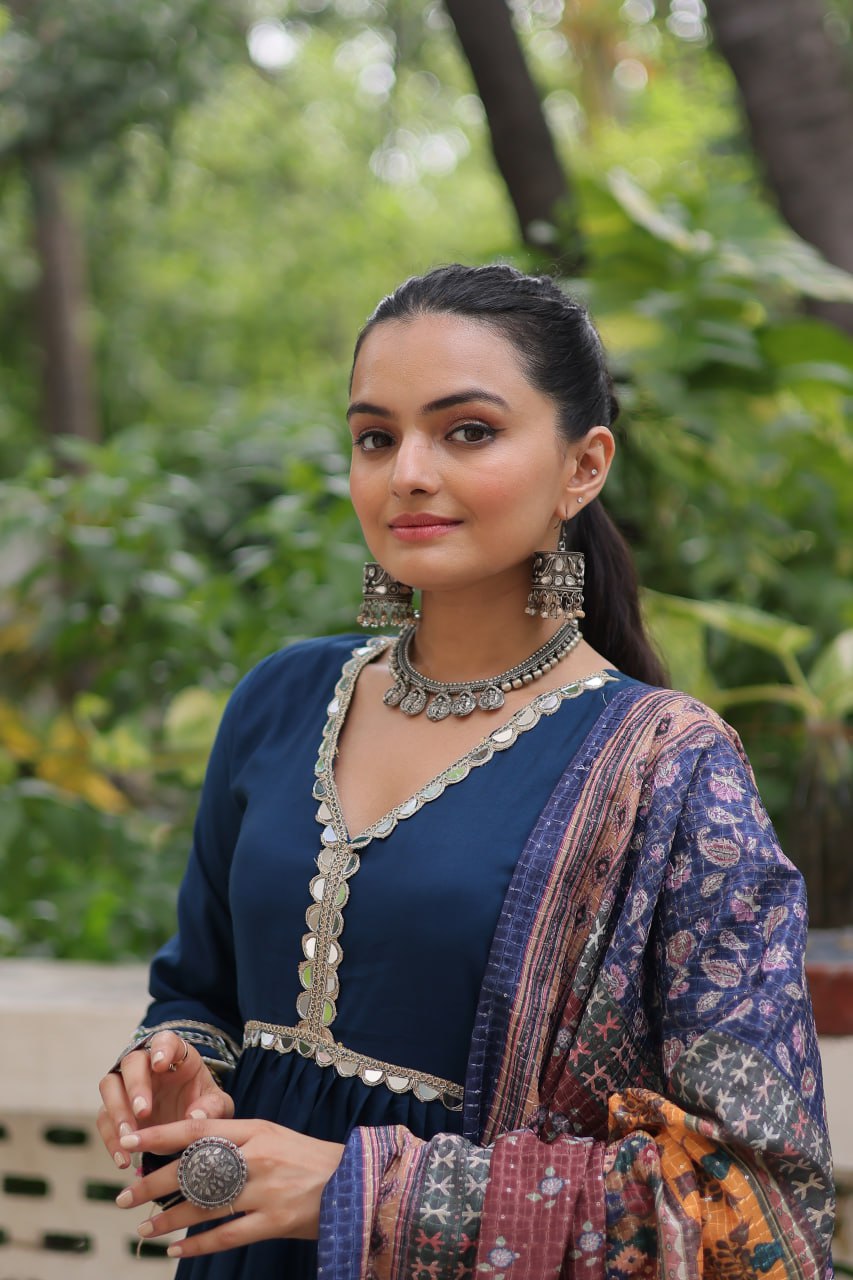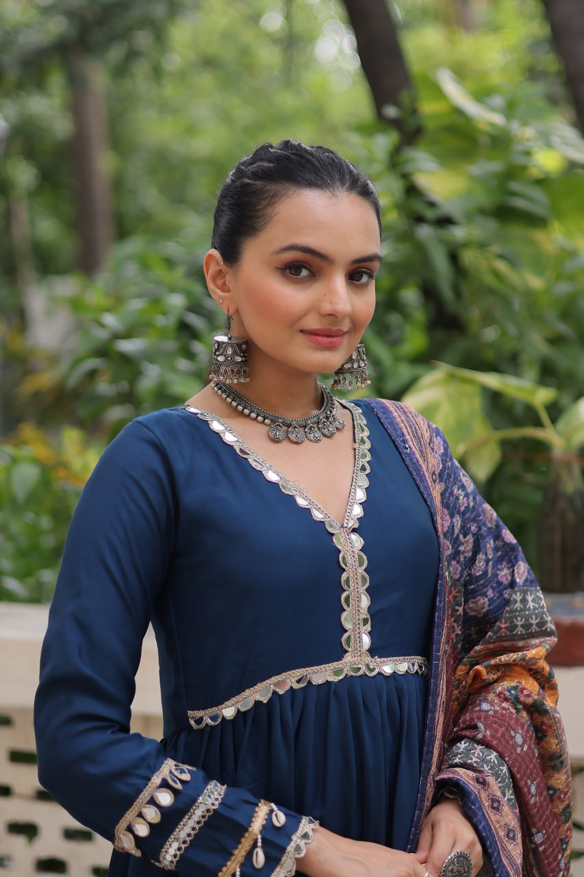 Blue Pure Roman Silk Navratri Gown