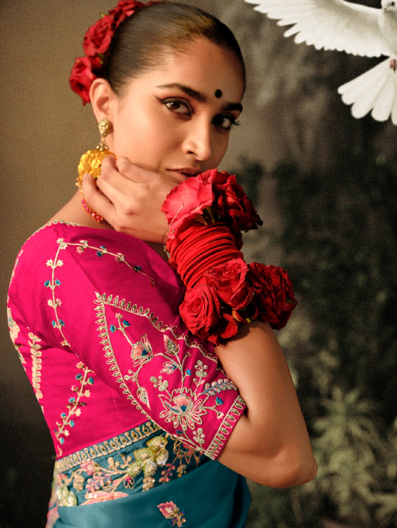 Blue Wedding Saree with Embroidery and Tassels