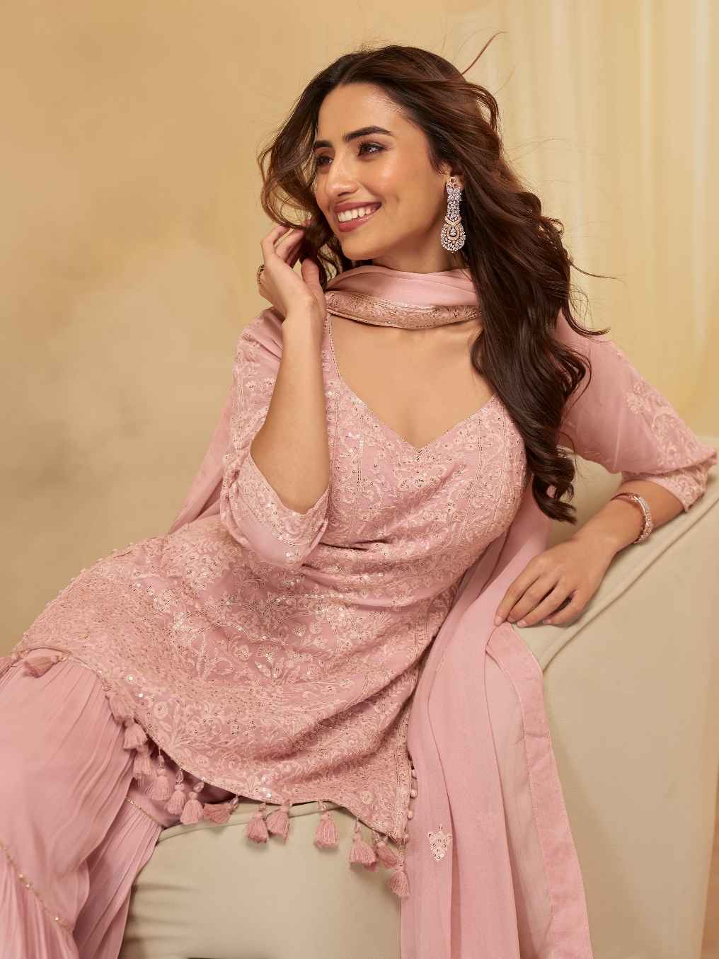 Blush Pink Chikankari Georgette Sharara Suit with Dupatta