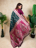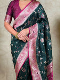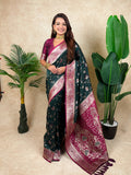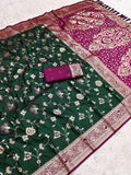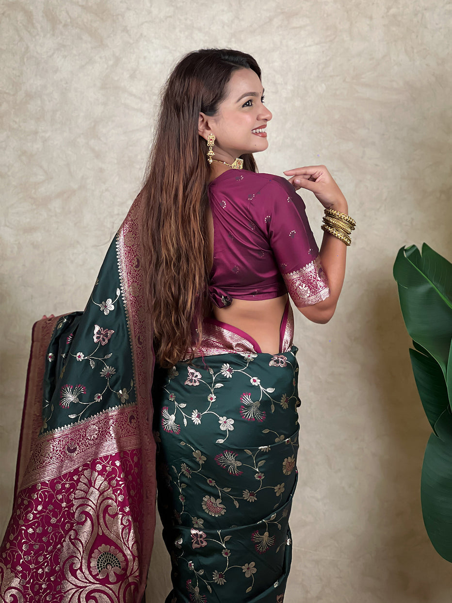 Bottle Green Banarasi Jaal Zari Woven Silk Banarasi Saree