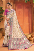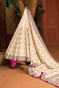 Bridal Wedding Cream Kacchi Work Banarasi Silk Saree