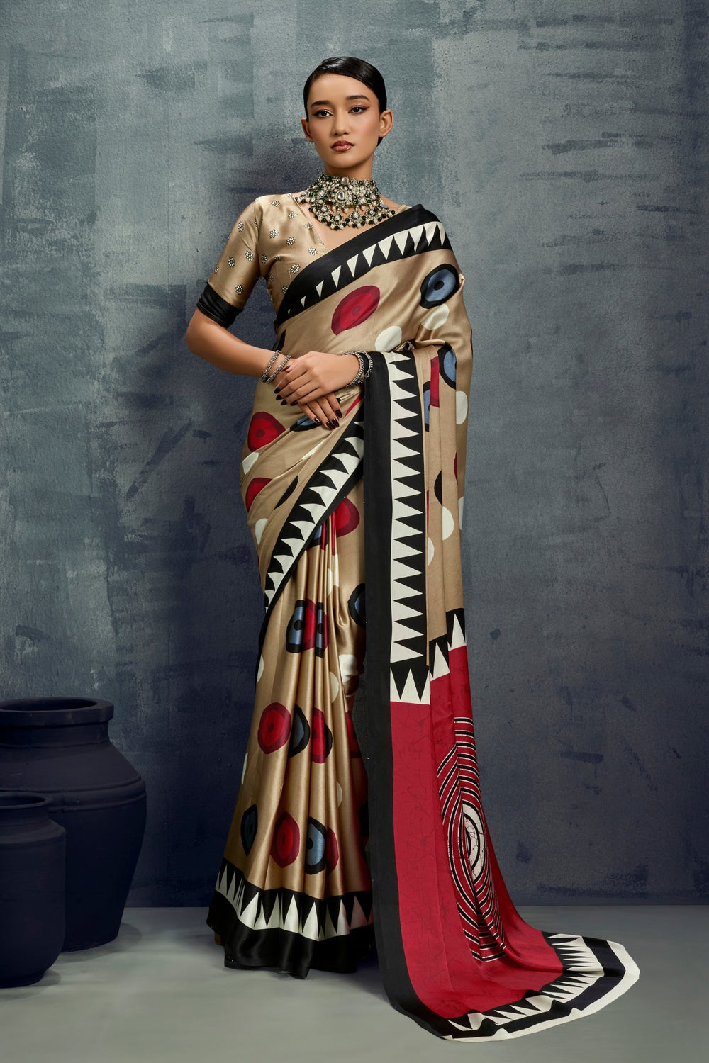 Brown Ajrakh Printed Satin Crepe Silk Saree