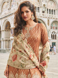 Brown Embroidered Silk Sharara Suit with Floral Printed Dupatta