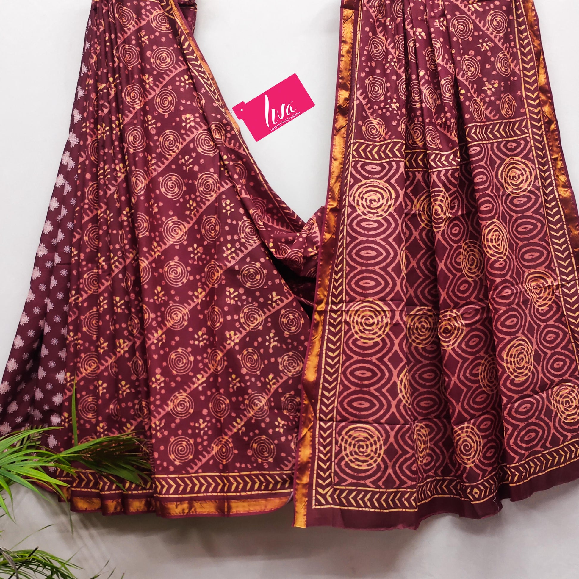 Maroon Pure Soft Cotton Bagru Block Print Saree