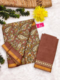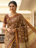Brown Pure Soft Mal Mal Cotton Bagru Block Print Saree