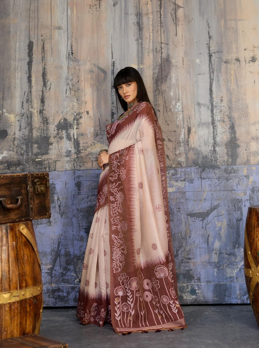 Brown Pure Soft Munga Handloom Weaving Cotton Saree
