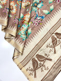 Soft Tussar Silk Sarees with Nature bird prints all over the body having arrow zari woven border on both sides