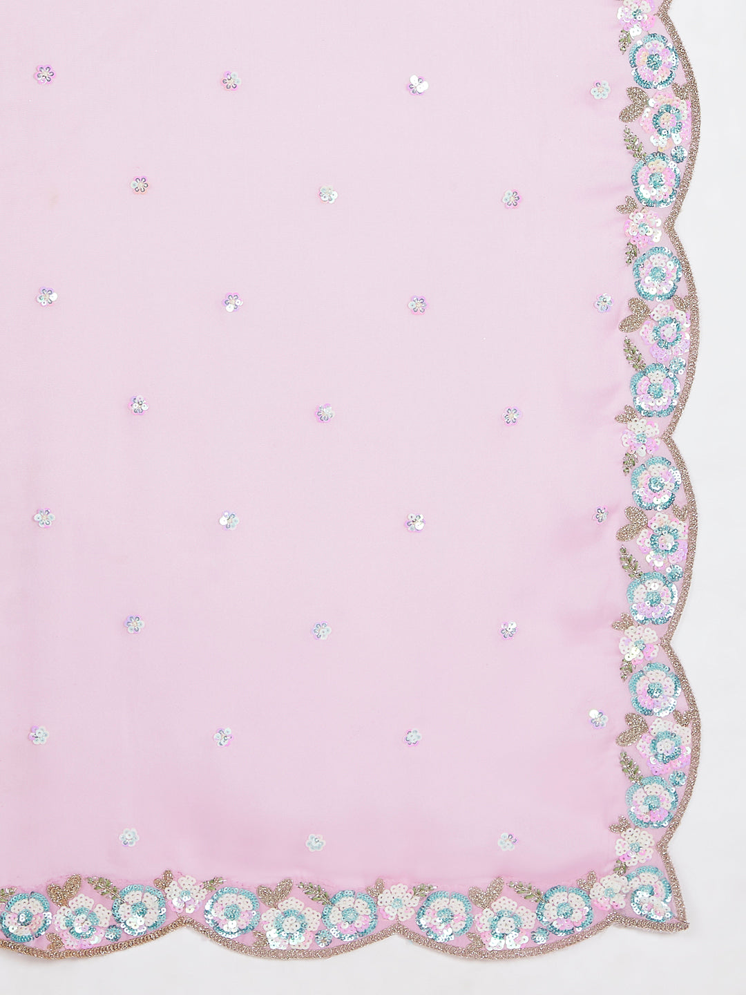 Burgundy Georgette Sequins and Thread Embroidery Lehenga Choli & Dupatta