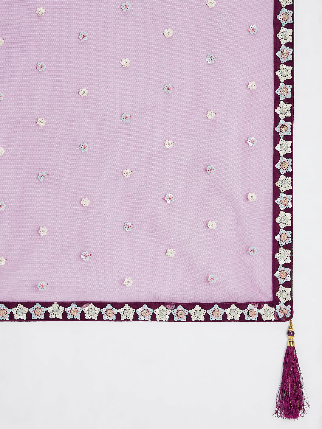 Burgundy Net Floral Sequins Embroidery Lehenga Choli with Dupatta