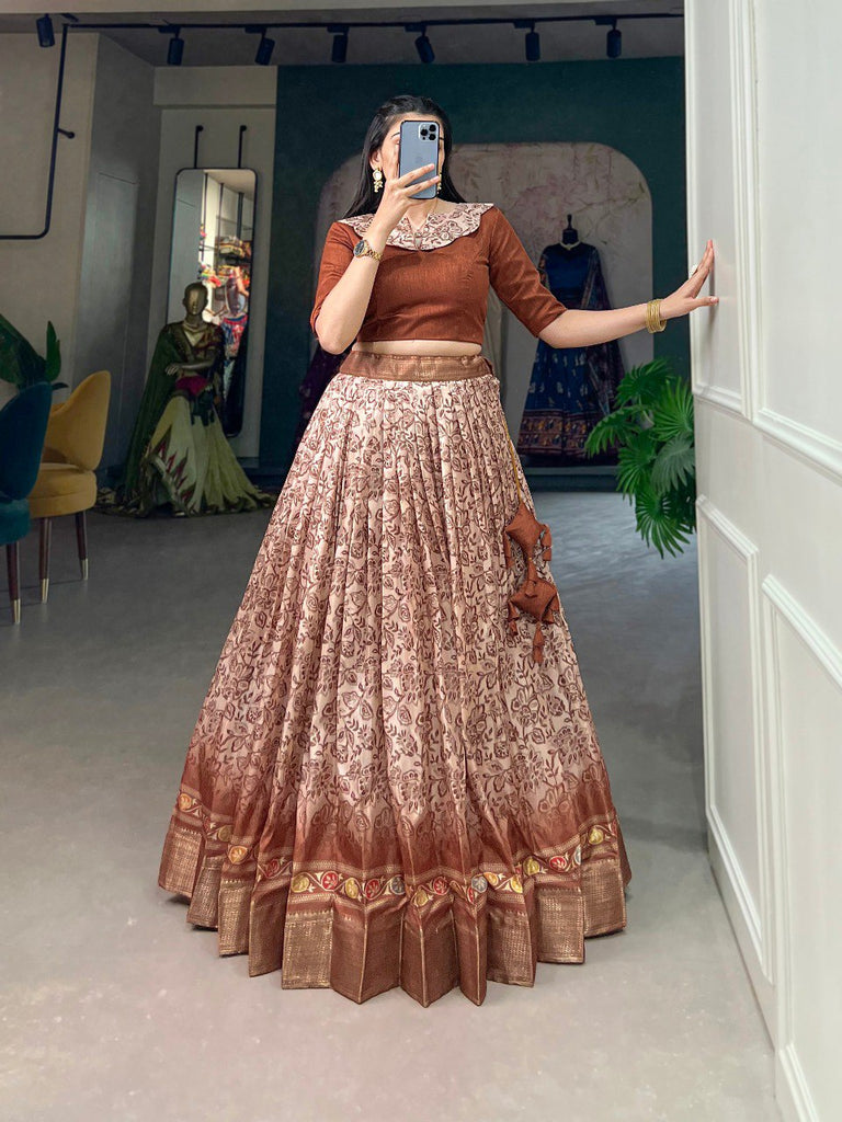 Captivating Brown Floral Lehenga Choli Set Perfect for Weddings & Festive Occasions