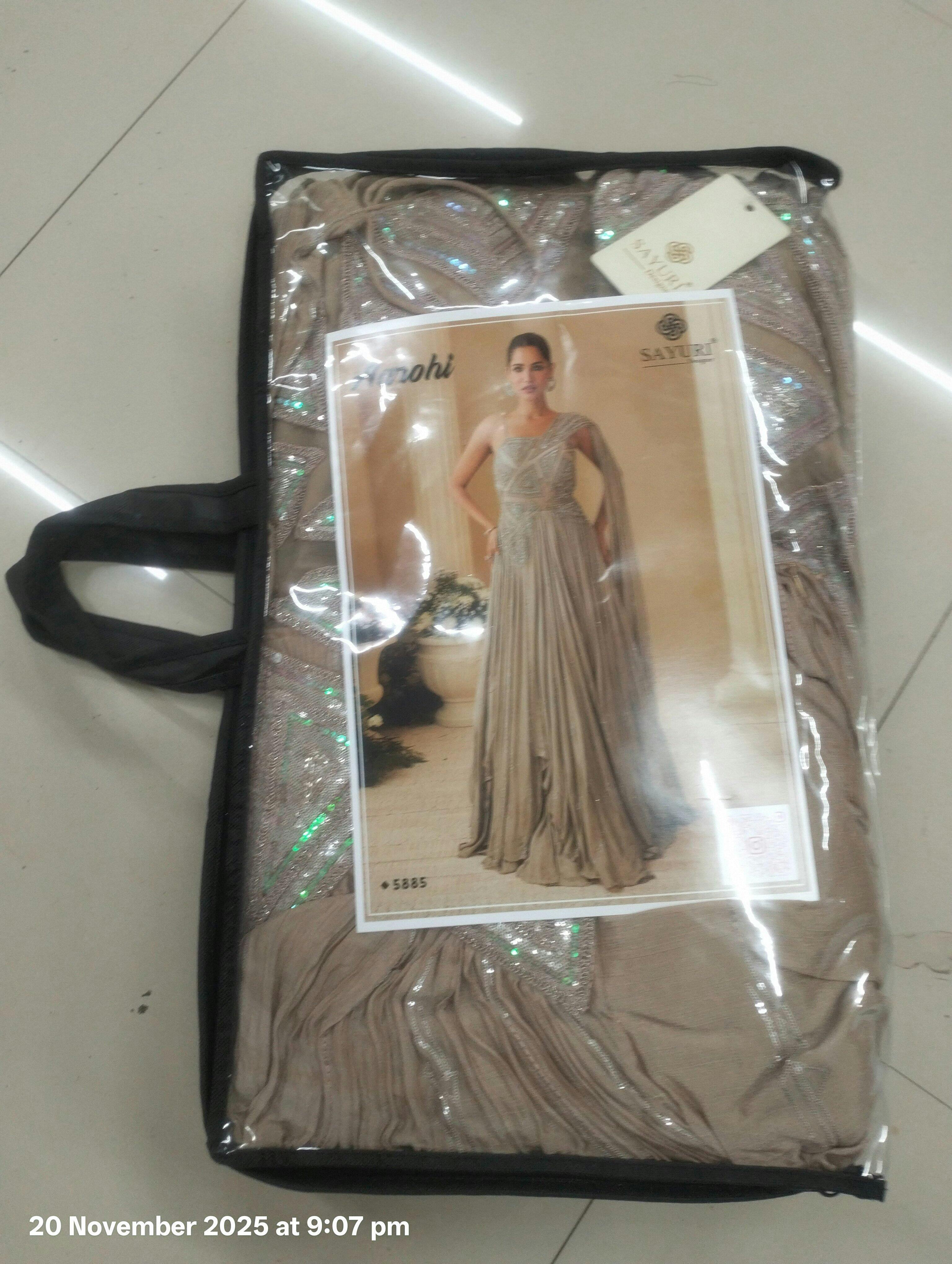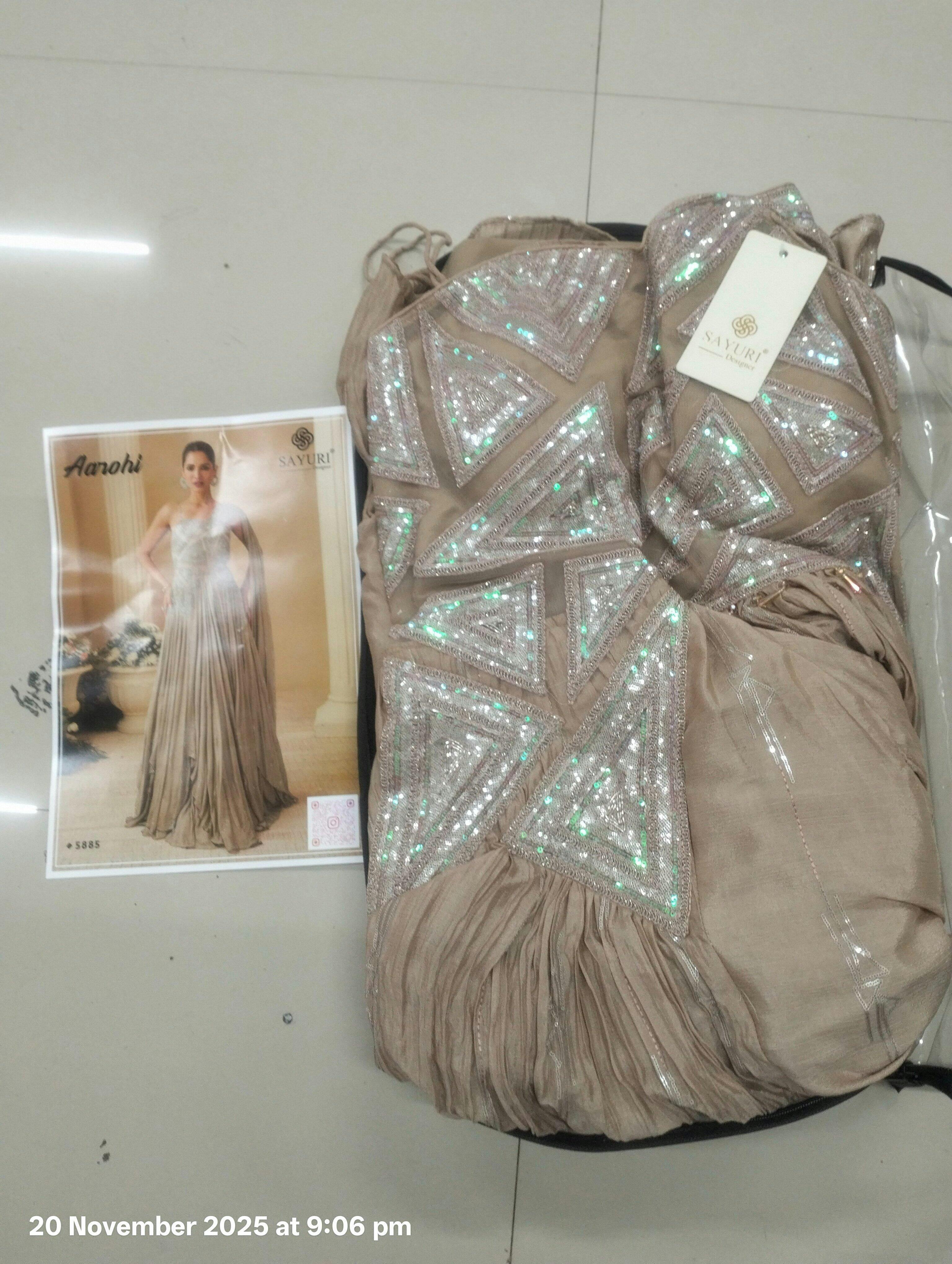 Champagne Beige Heavy Hand Embroidered Chinon Silk Wedding Gown