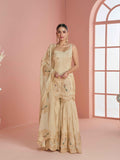 Champagne Gold Chinon Silk Heavy Embroidered Sharara Suit