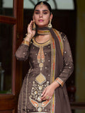Coffee Brown Designer Sharara Suit With Dupatta