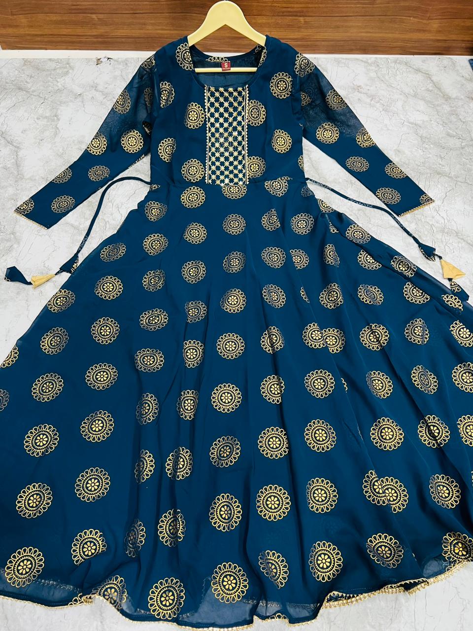 Kaveri Designer Pure Georgette Foil Print Flair Gown (799x06)