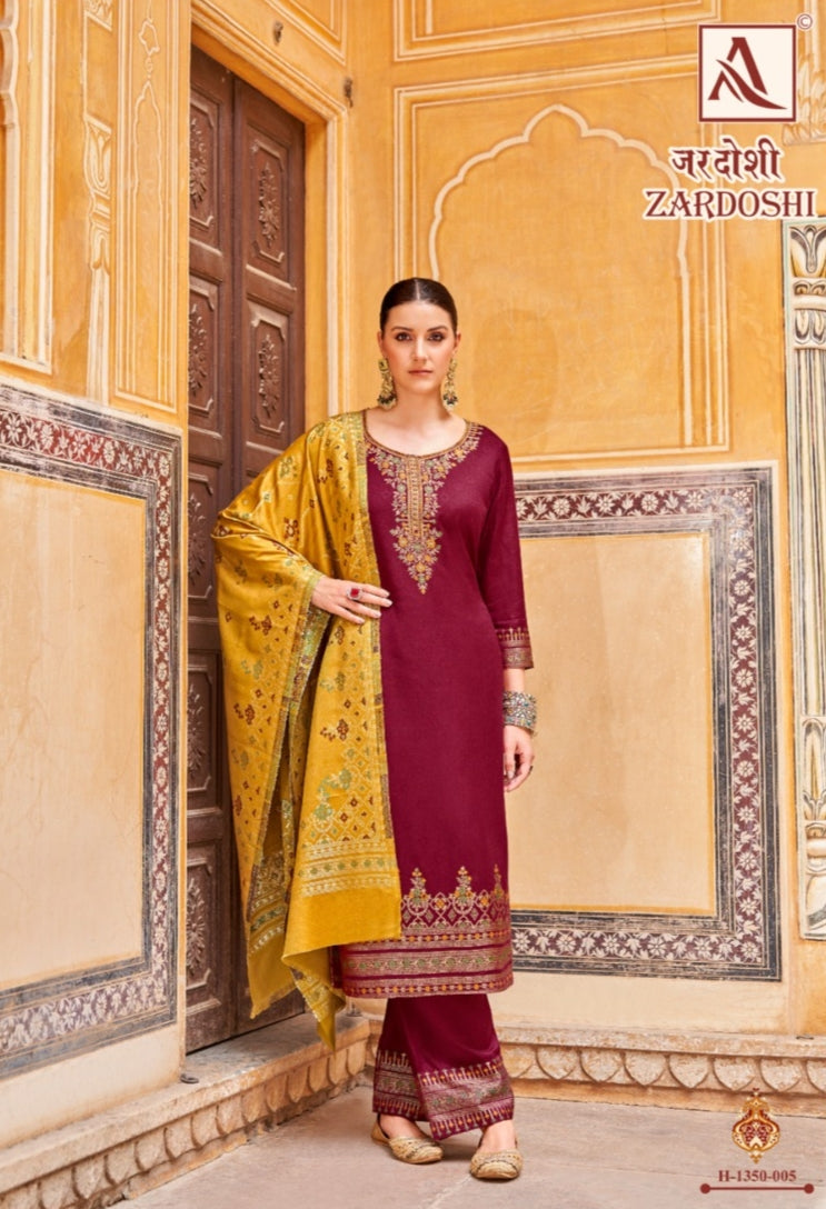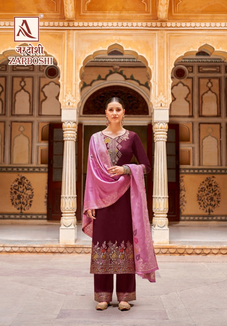 Alok Suits Zardoshi Pure Pashmina Jacquard Designer Pattern Salwar Suit