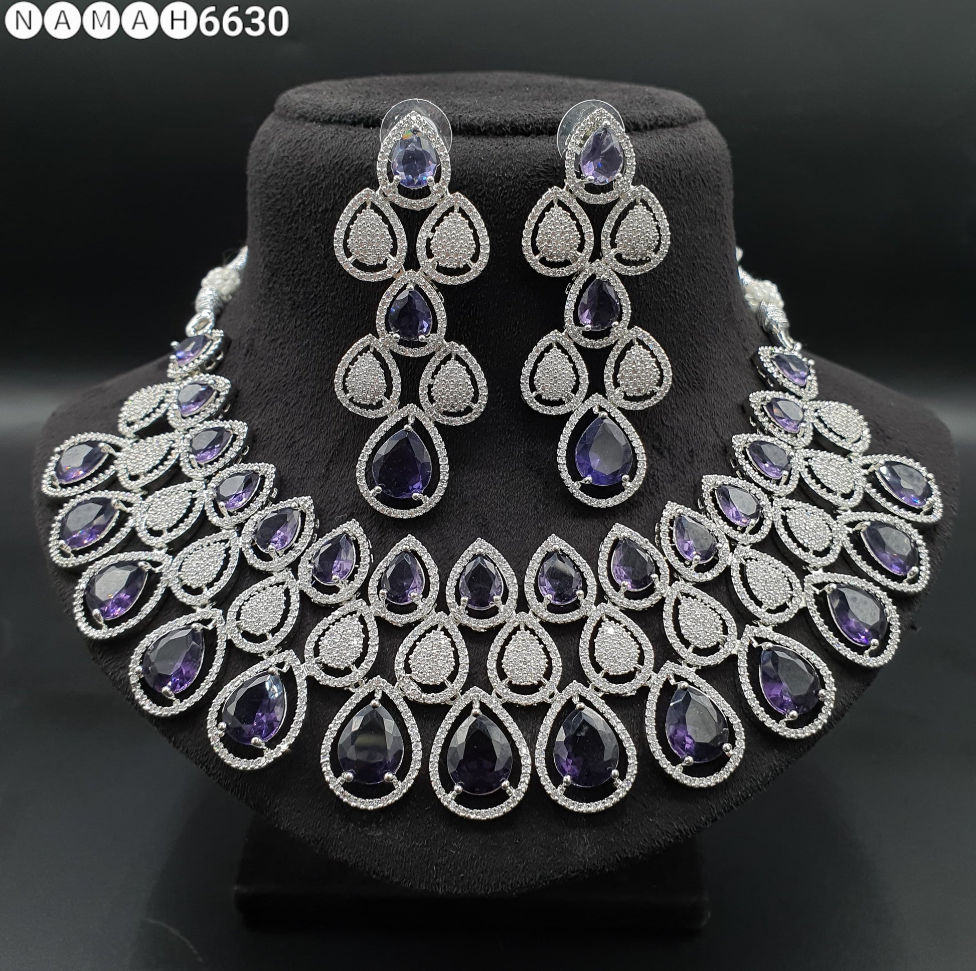 Beautiful American Diamond Antique Stone Necklace with Earrings Jewellery
