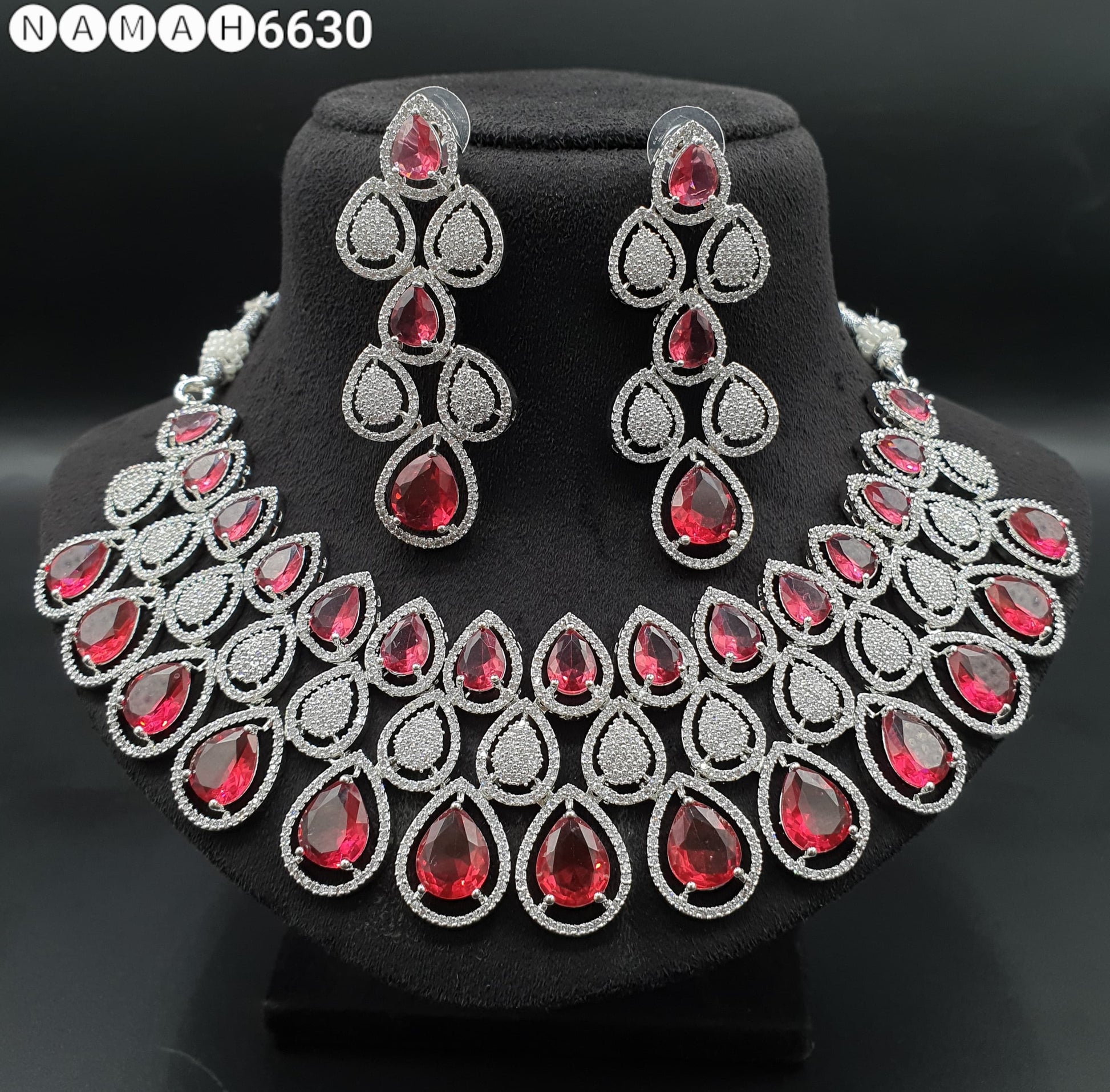 Beautiful American Diamond Antique Stone Necklace with Earrings Jewellery