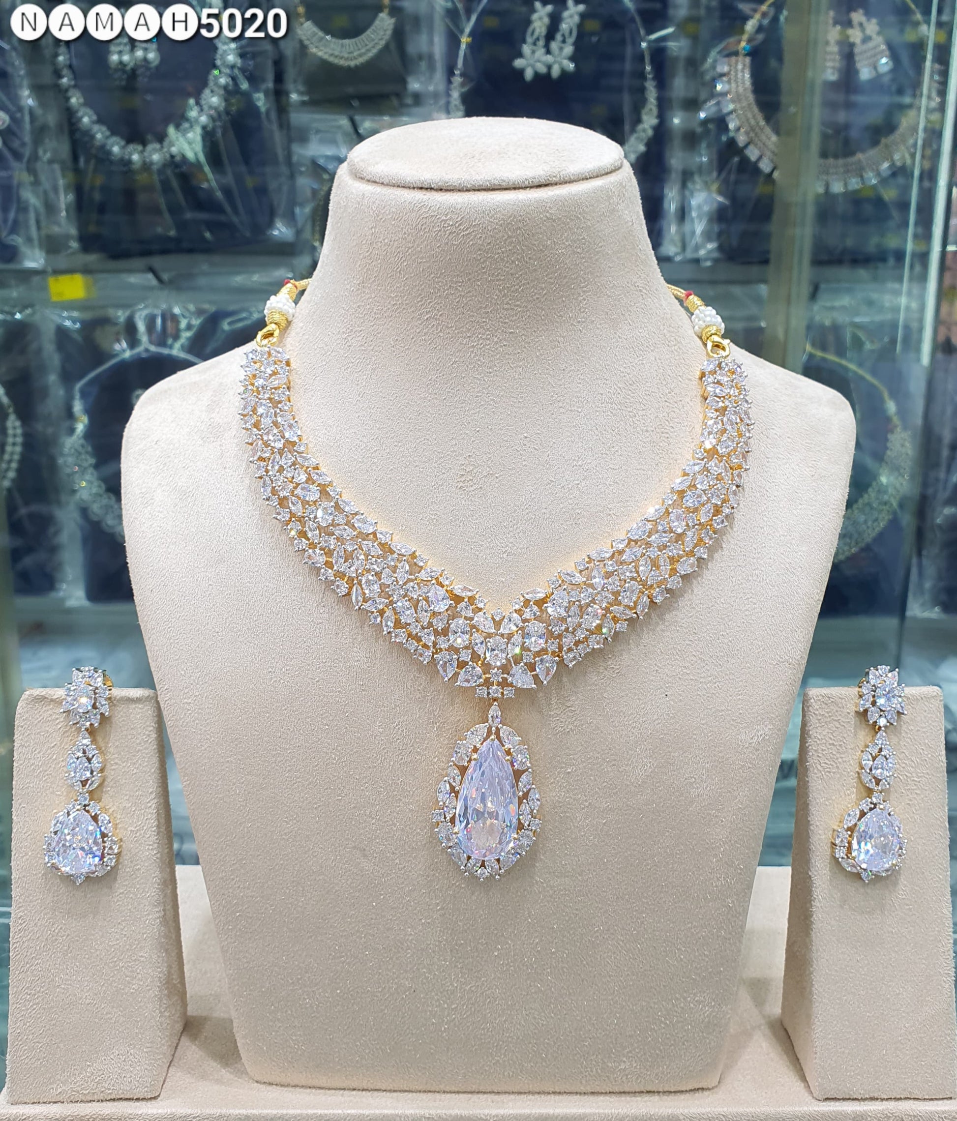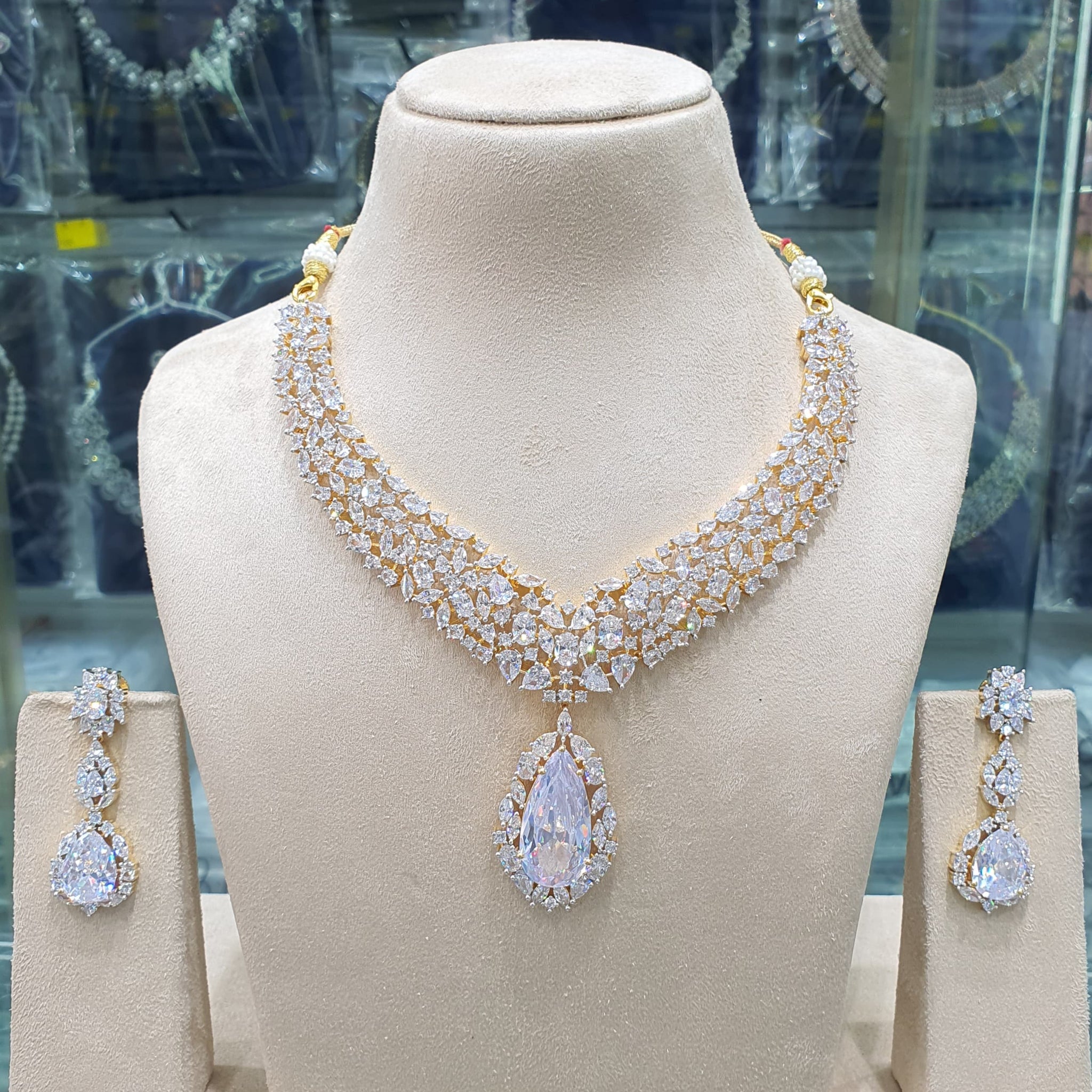 Beautiful American Diamond Antique Stone Necklace with Earrings Jewellery