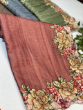 Soft Tussar Silk Sarees with Beautiful Digital Print With Attractive Embroidery Cutwork Border And Rich Digital Print Pallu & Print Blouse in new styles n new look ...........